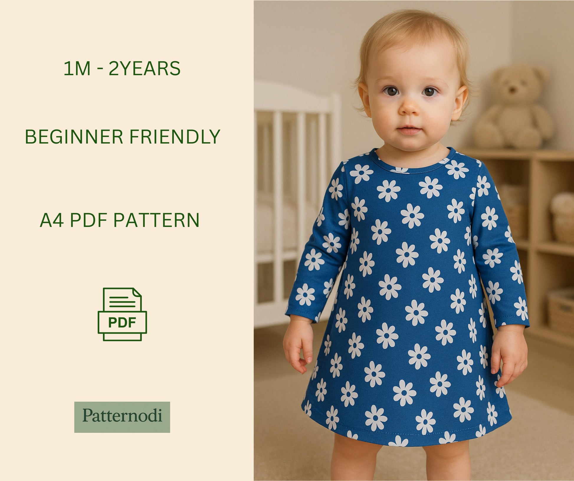 Baby Dress Pattern: Long Sleeve A-Line Sewing (A4 PDF Digital Download)